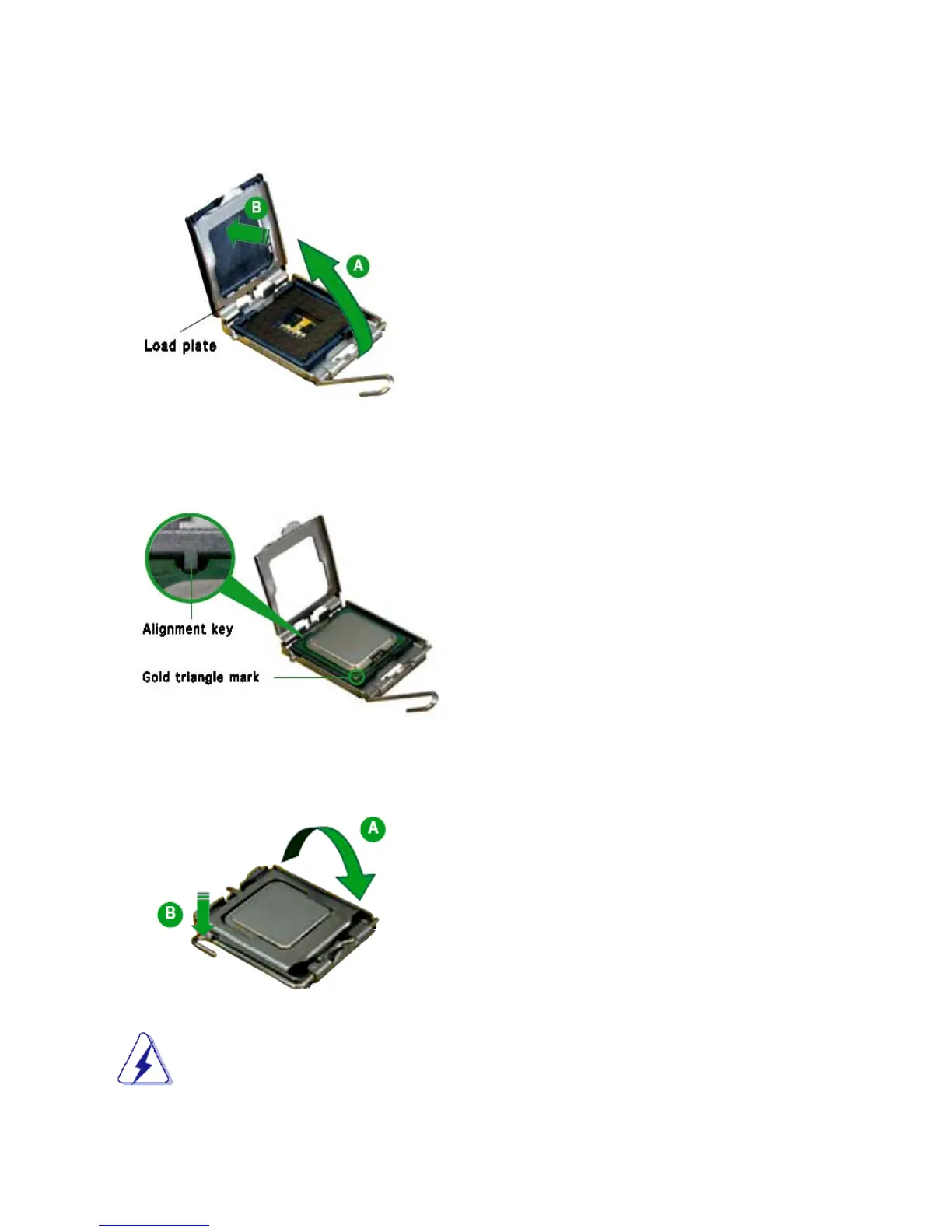 4. Lift the load plate with your thumb and forefinger to a 100° angle (A), then push the PnP cap from the