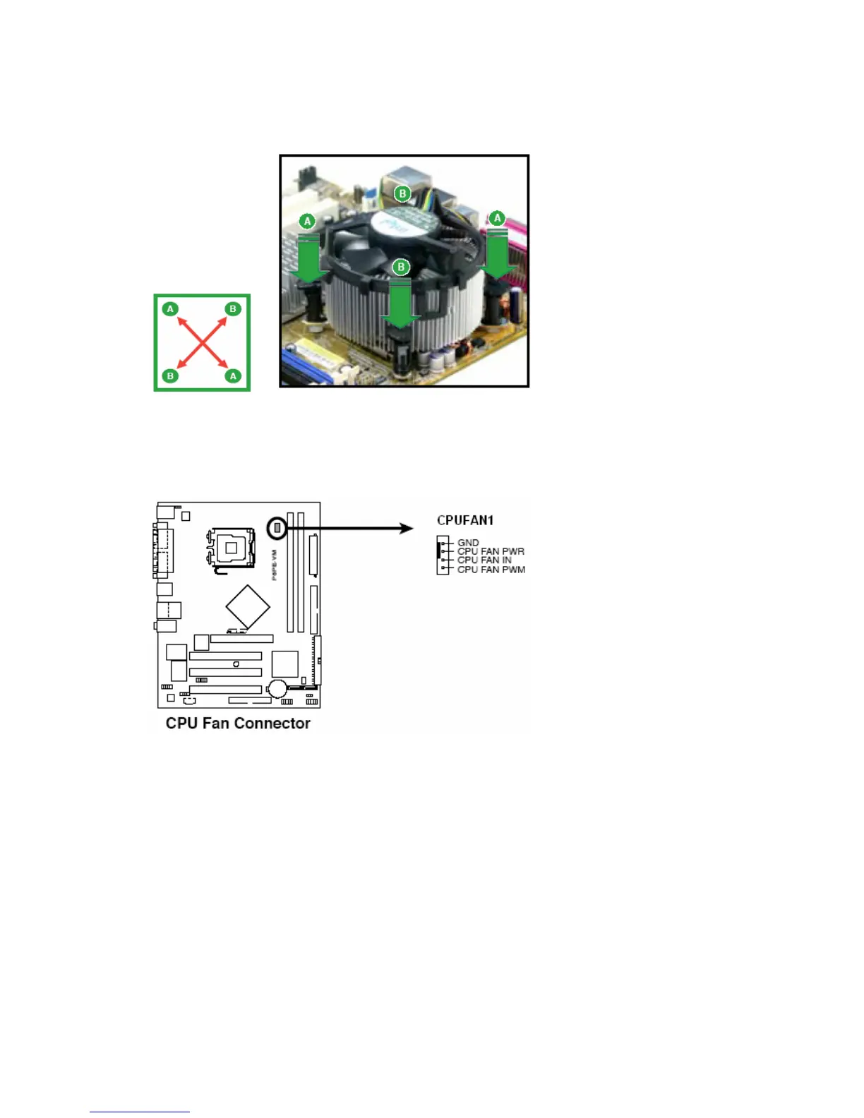 2. Push down two fasteners at a time in a diagonal sequence to secure the heatsink and fan