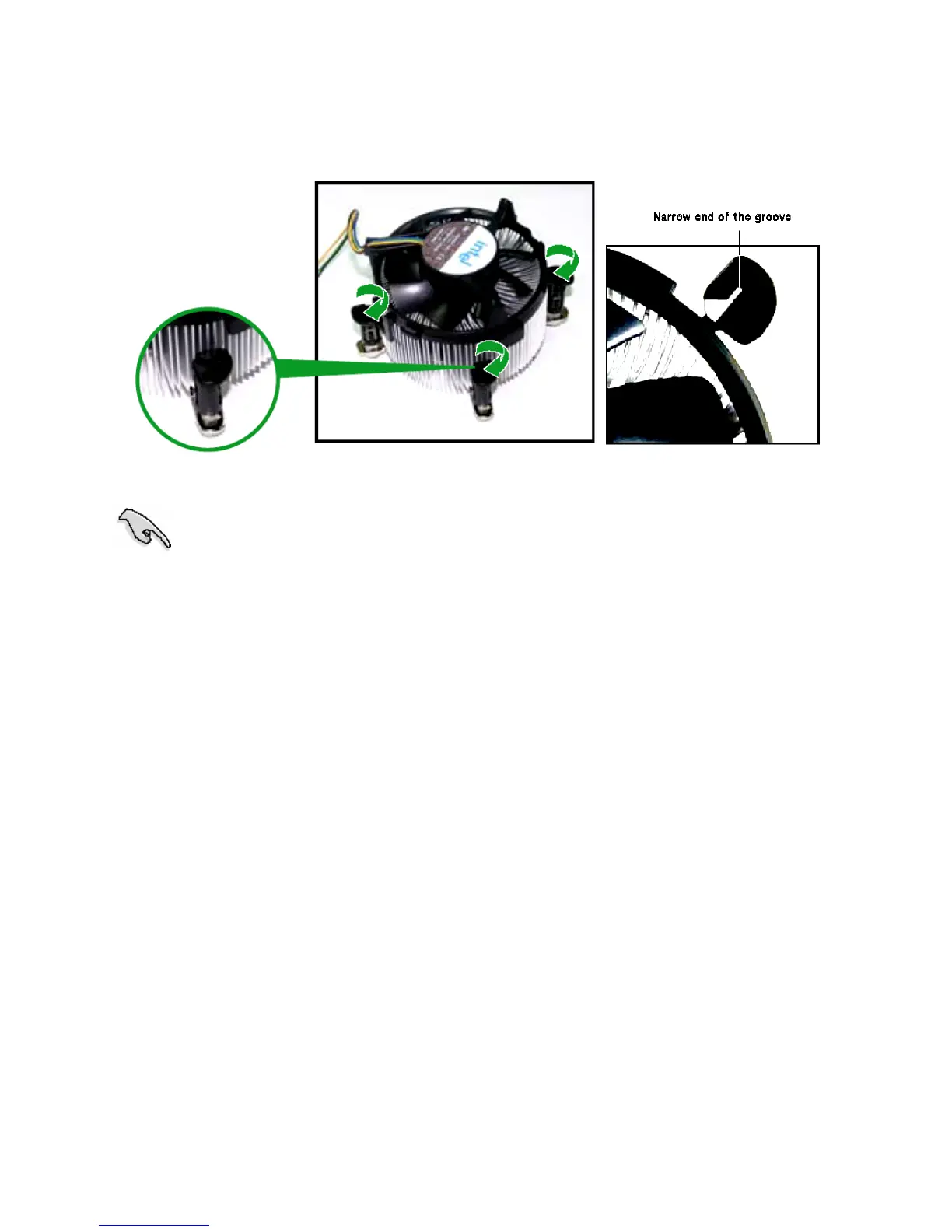 The narrow end of the groove should point outward after resetting.