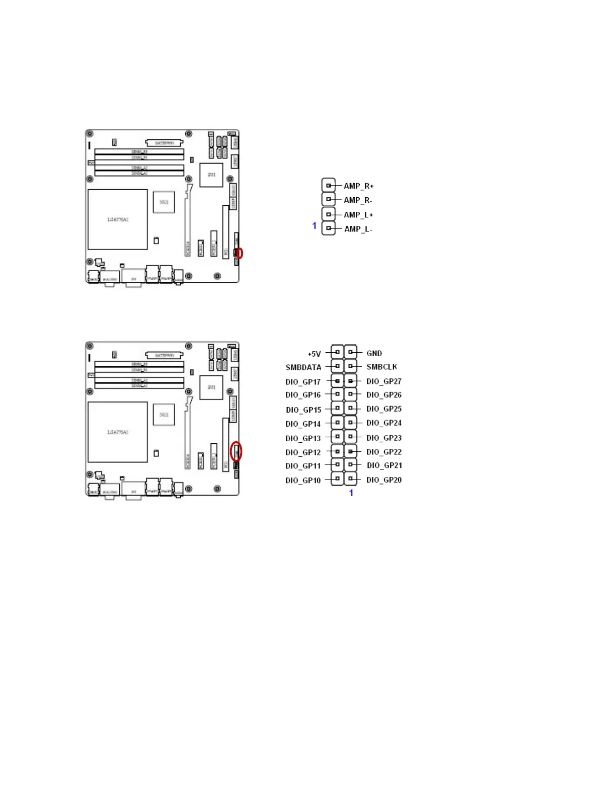 BCM RX45Q - Amplifier Connector (JAMP1); Digital I;O Connector (JDIO1)
