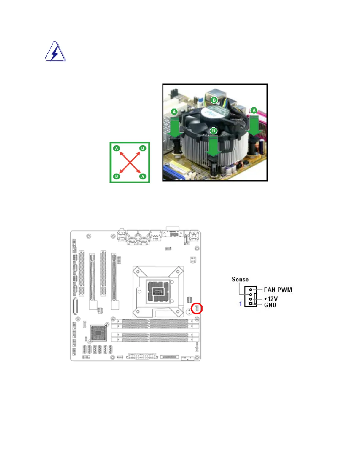 2. Push down two fasteners at a time in a diagonal sequence to secure the heatsink and fan