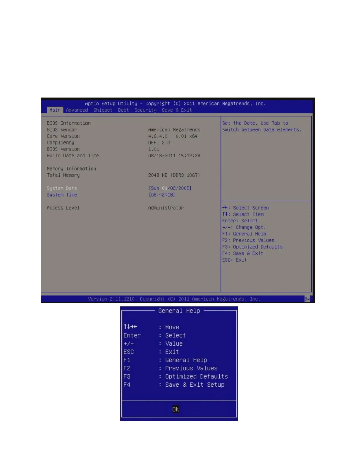 When entering the BIOS, the following screen appears. The BIOS menu screen displays the items that