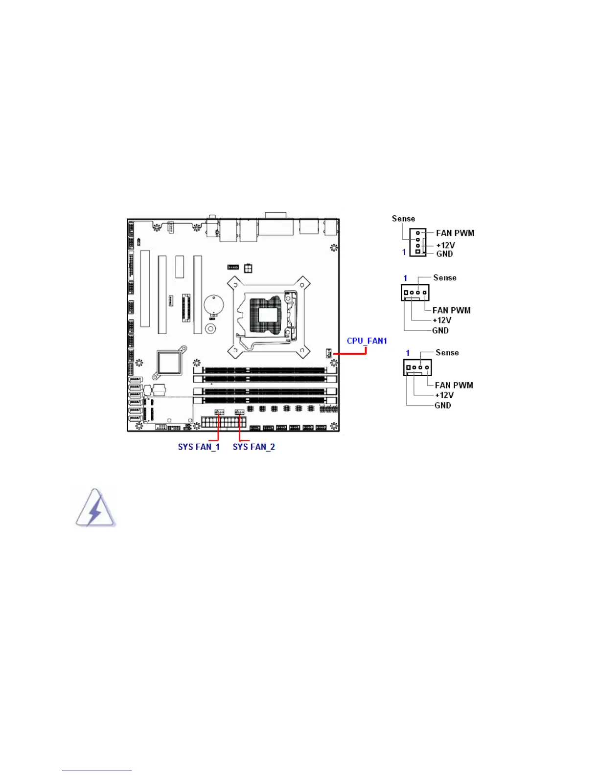 The fan power connectors support system cooling fan with +12V. When connecting the wire to these fan