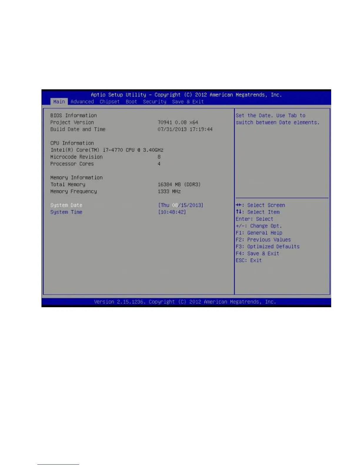 This menu gives you an overview of the general system specifications. The BIOS