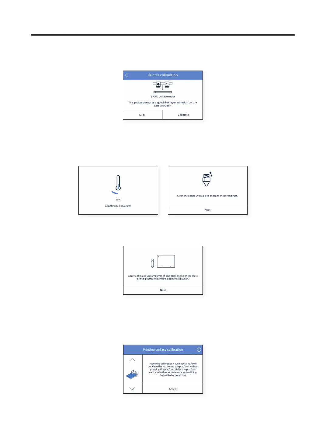 • When indicated on the screen, apply a thin and uniform layer of printing adhesive (Magigoo glue stick included in