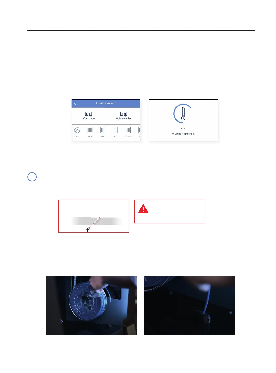 • Take the tip of the filament out of the placing hole and cut the first centimeters of the filament to ensure it is