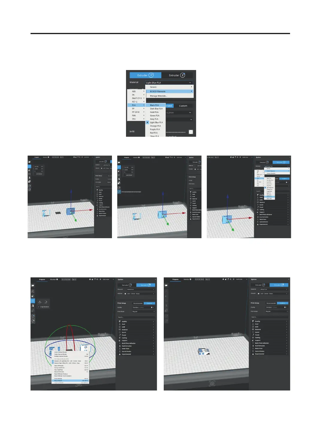 Repeat the process with the other part, assign the Extruder 2 and select the material loaded.