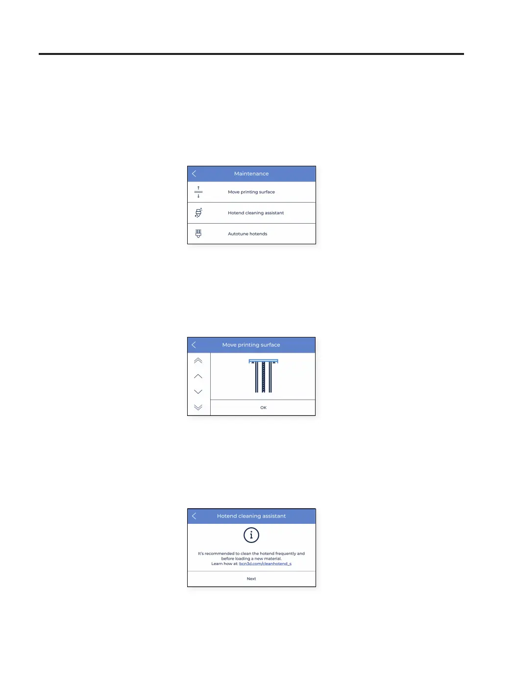 1. Move printing surface: it is used when it is needed to lower or raise the printing platform. This is a very simple