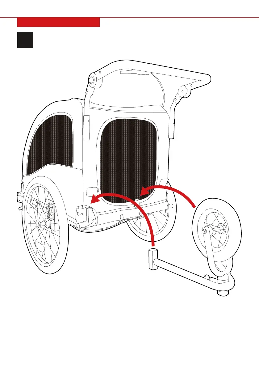 If switching to the bike trailer function, remove the fork/wheel and secure it in the designated spot on the