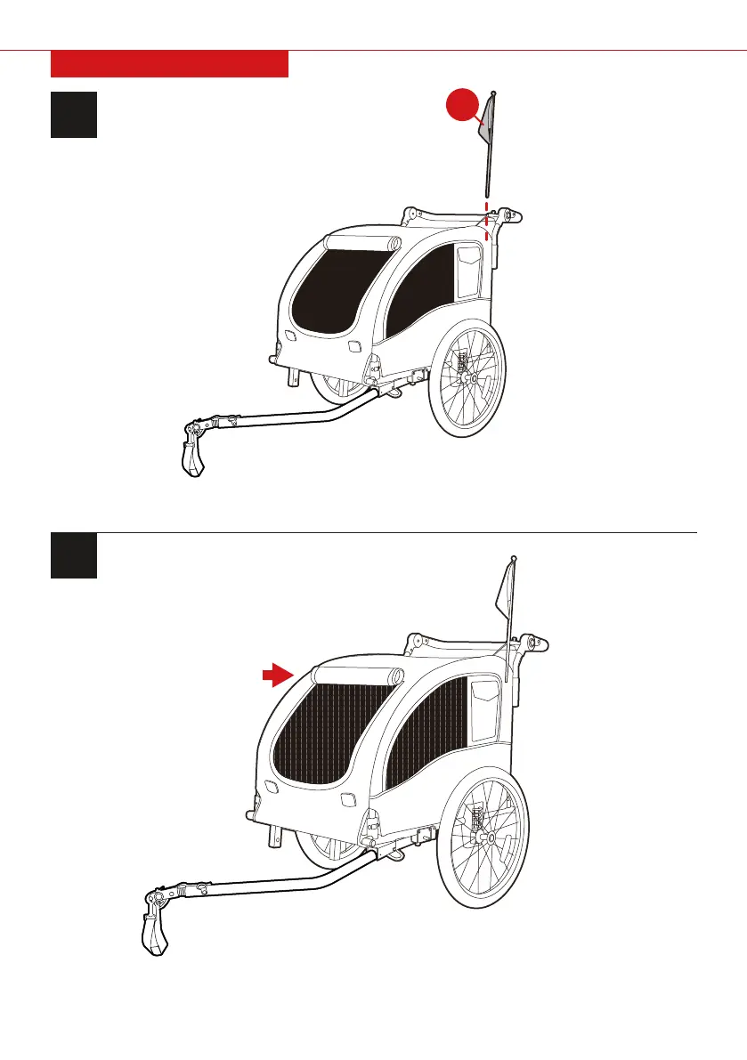 Insert the part A safety flag into the slot on the left side of the trailer.