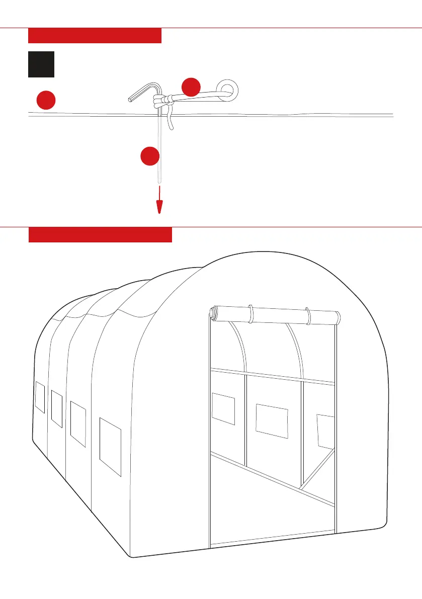 Use the grommets on the cover to secure the greenhouse to the ground with the part 2 ropes