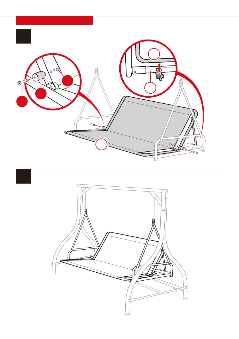 Insert the part L seat into the clamps on the back swing frame. Attach the seat with two part 3
