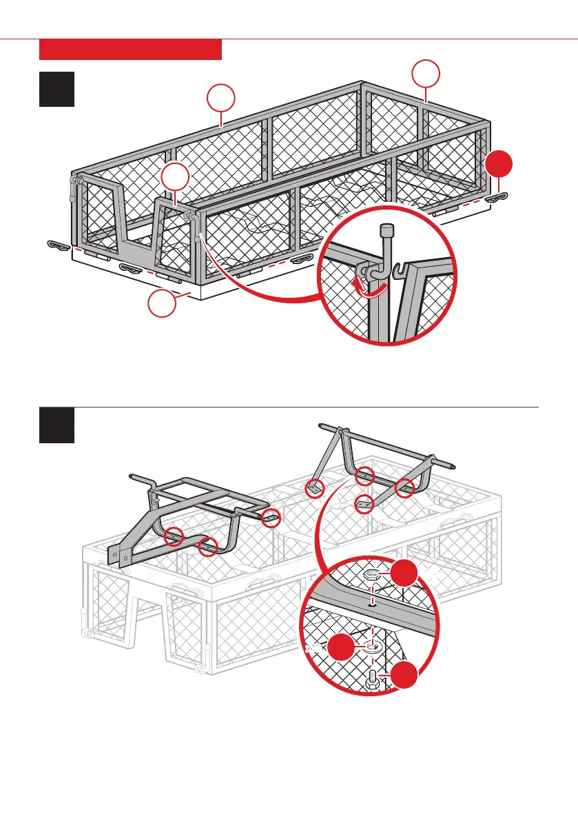 Attach the completed item from steps 2 to part A bottom frame using four part 3 bolts, four part 5 nuts,