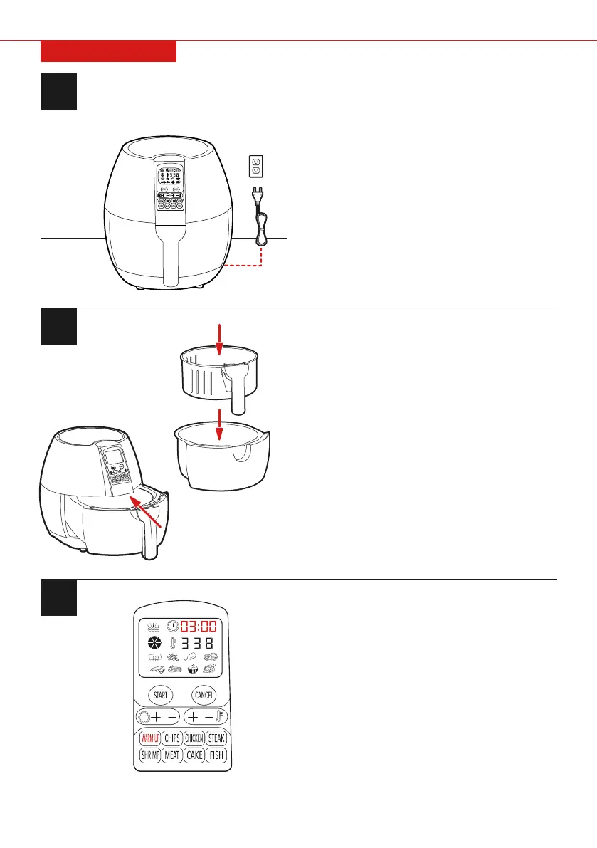 NOTE: clean basket and pan with hot water, dish soap, and a non-abrasive sponge before first