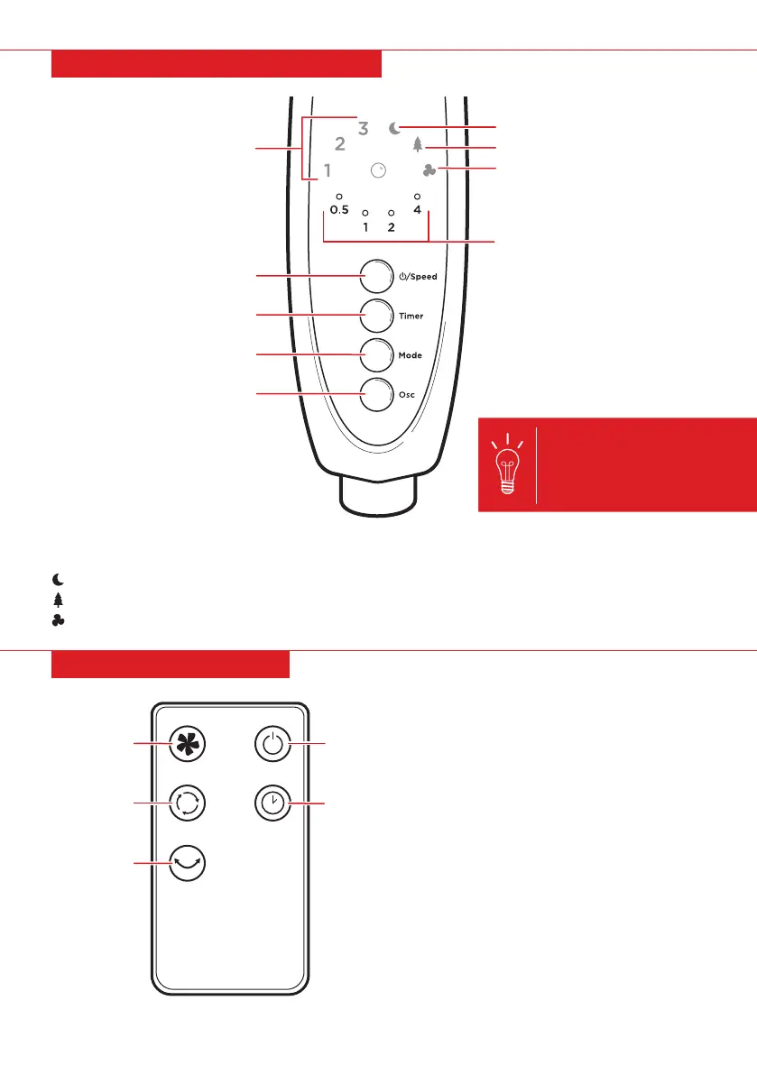 • Power/Speed: Cycle between power on/o, low, medium, and high fan settings.