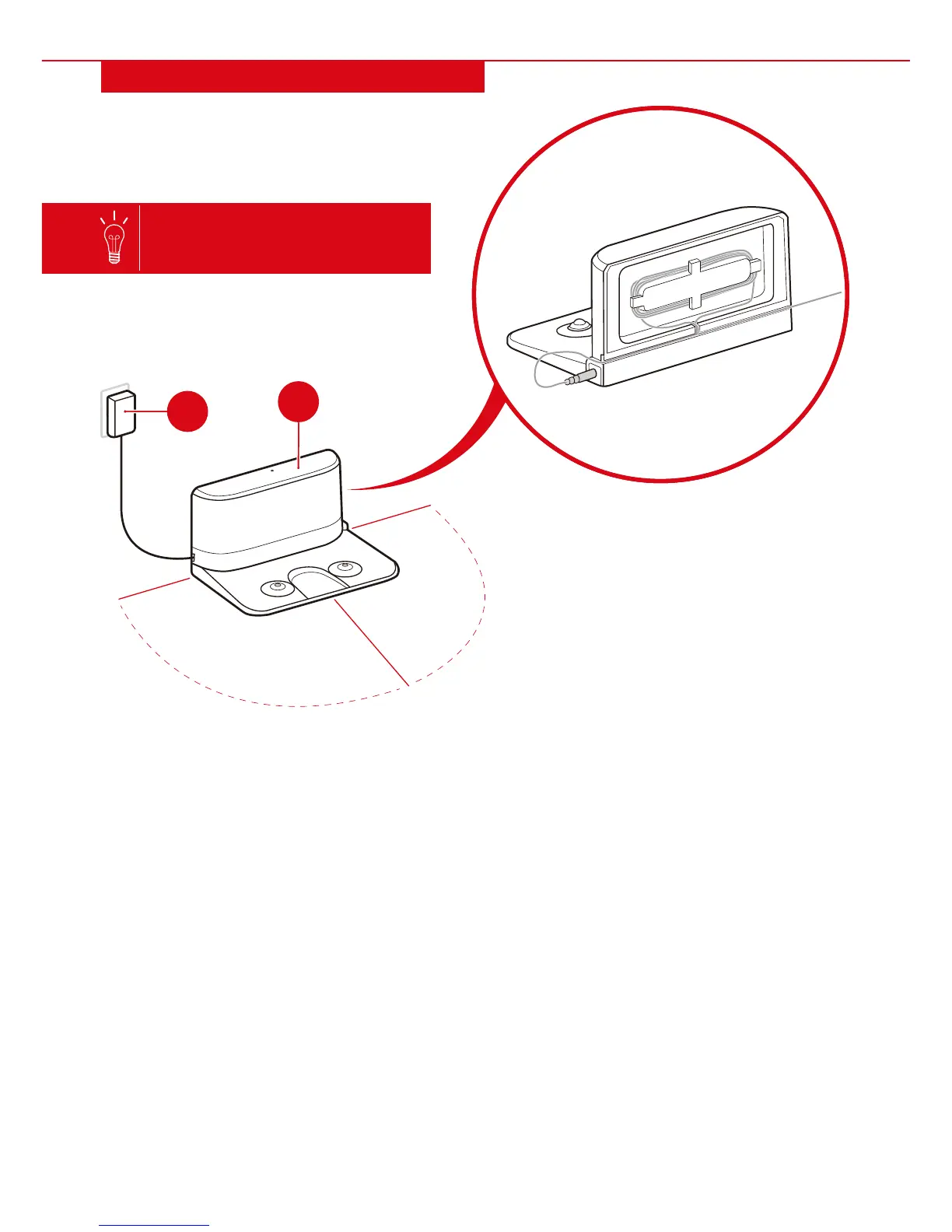 1. Place the part H charging dock on flat ground. It is recommended that the charging dock is placed in
