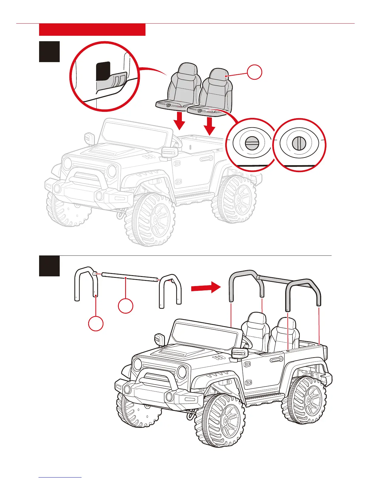 Install two part O seats by hooking them onto the car,