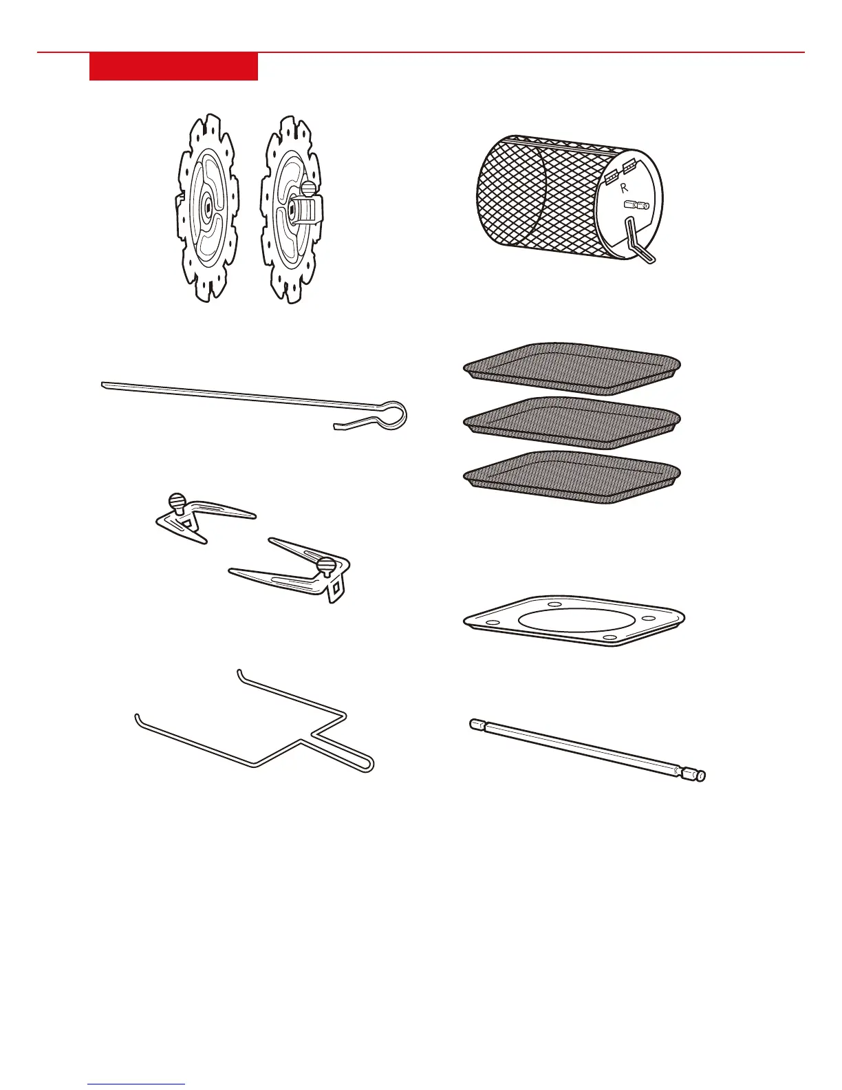 • SKEWER RACKS (L/R): Use with skewers/rotisserie shaft to cook kabobs, meat, or vegetables.
