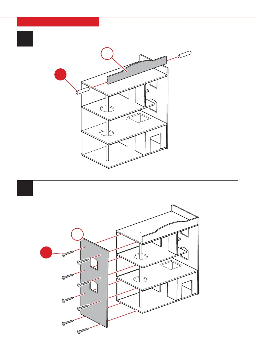 Insert a dowel on the front panel into the right side, then attach the part A left side