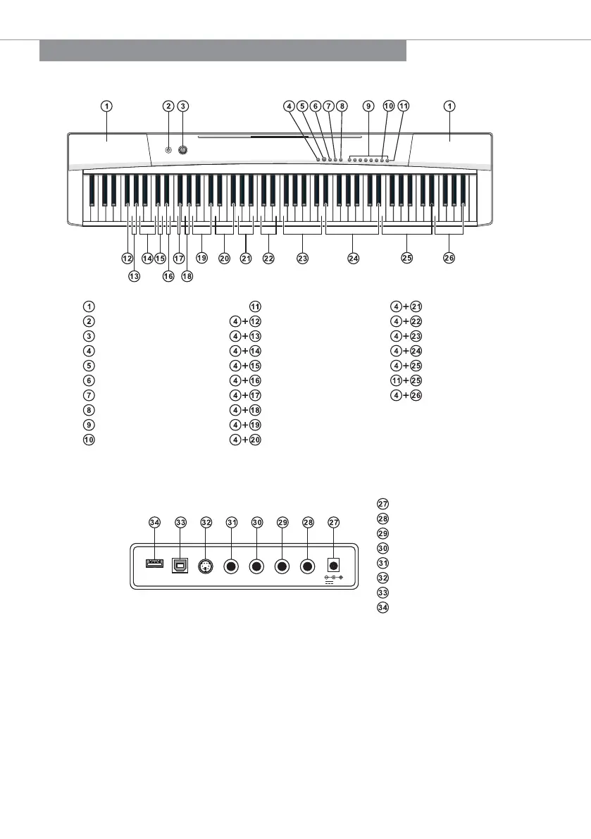 BCP SKY5484 - Main Diagram: Piano Controls; Front and Rear Panel Layout