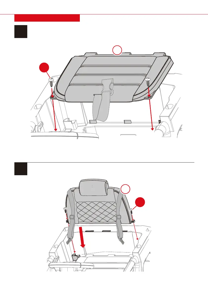 Attach the part I backrest with two part 2 screws.