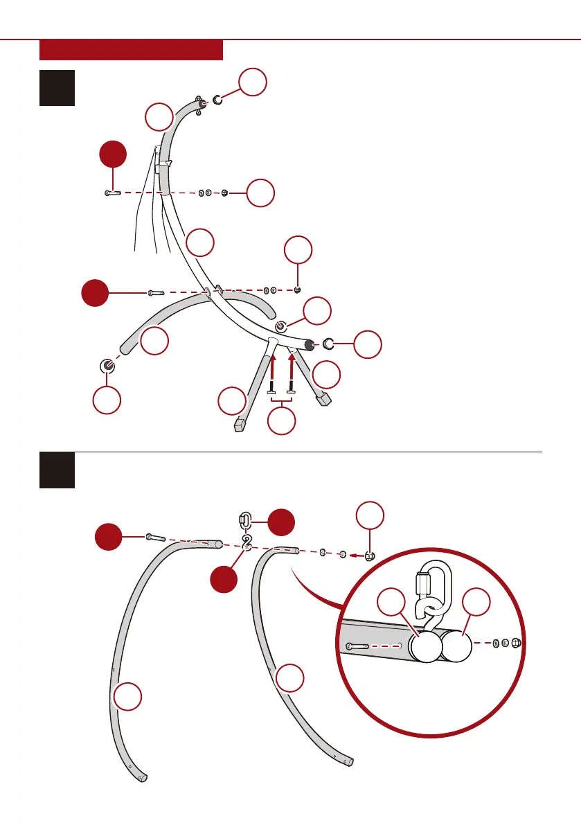 Place part 8 between the two part D seat frame curved pipes and secure with the part 1 bolt