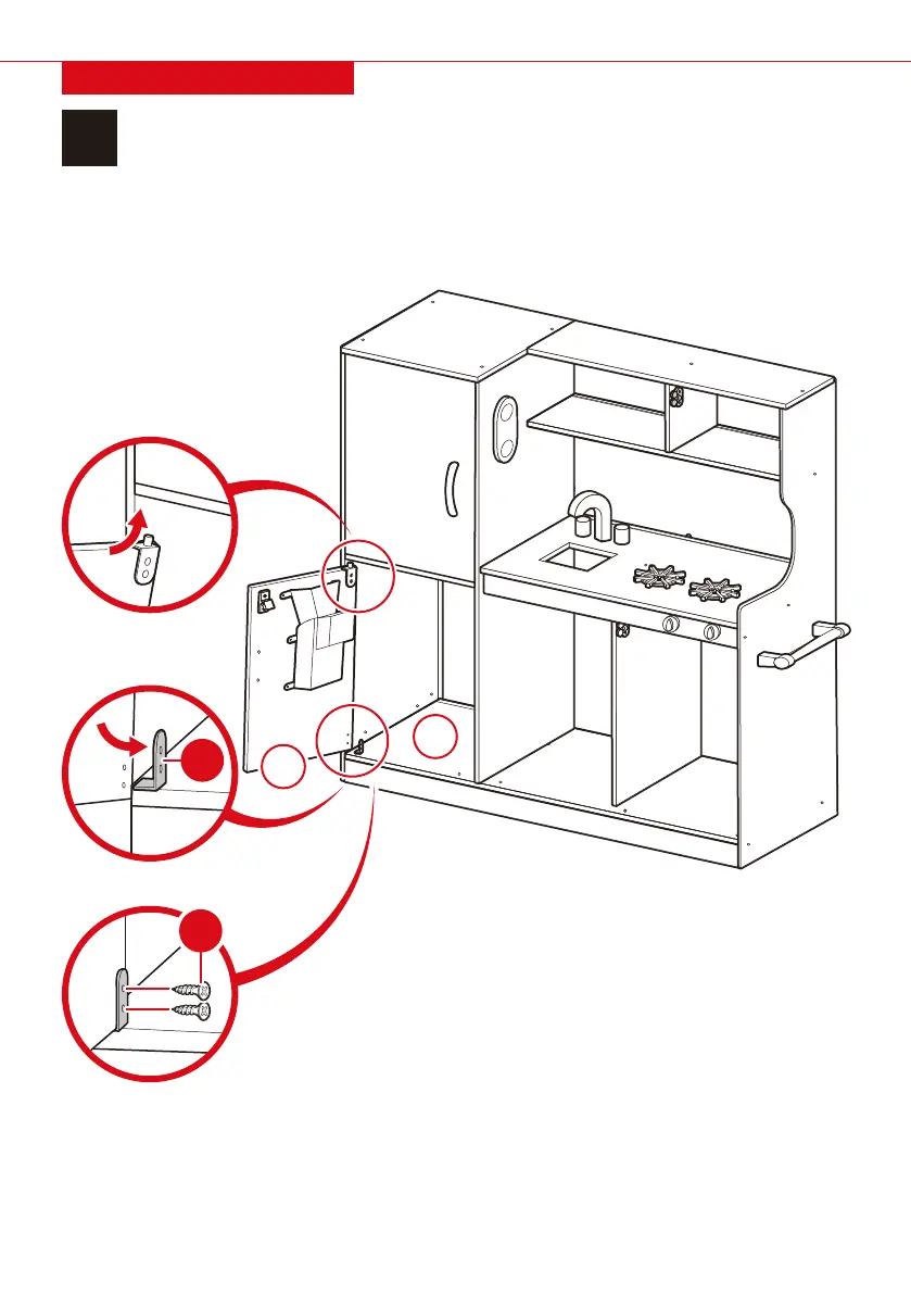 Insert one part N hinge peg into the opening on the base and secure to the pantry door with two