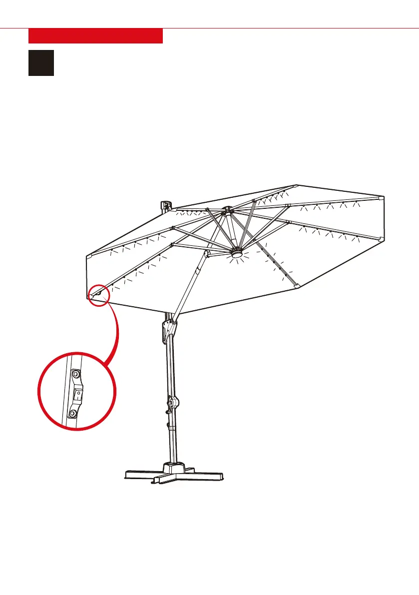 Locate the on/o switch inside the umbrella to enjoy the LED lights.