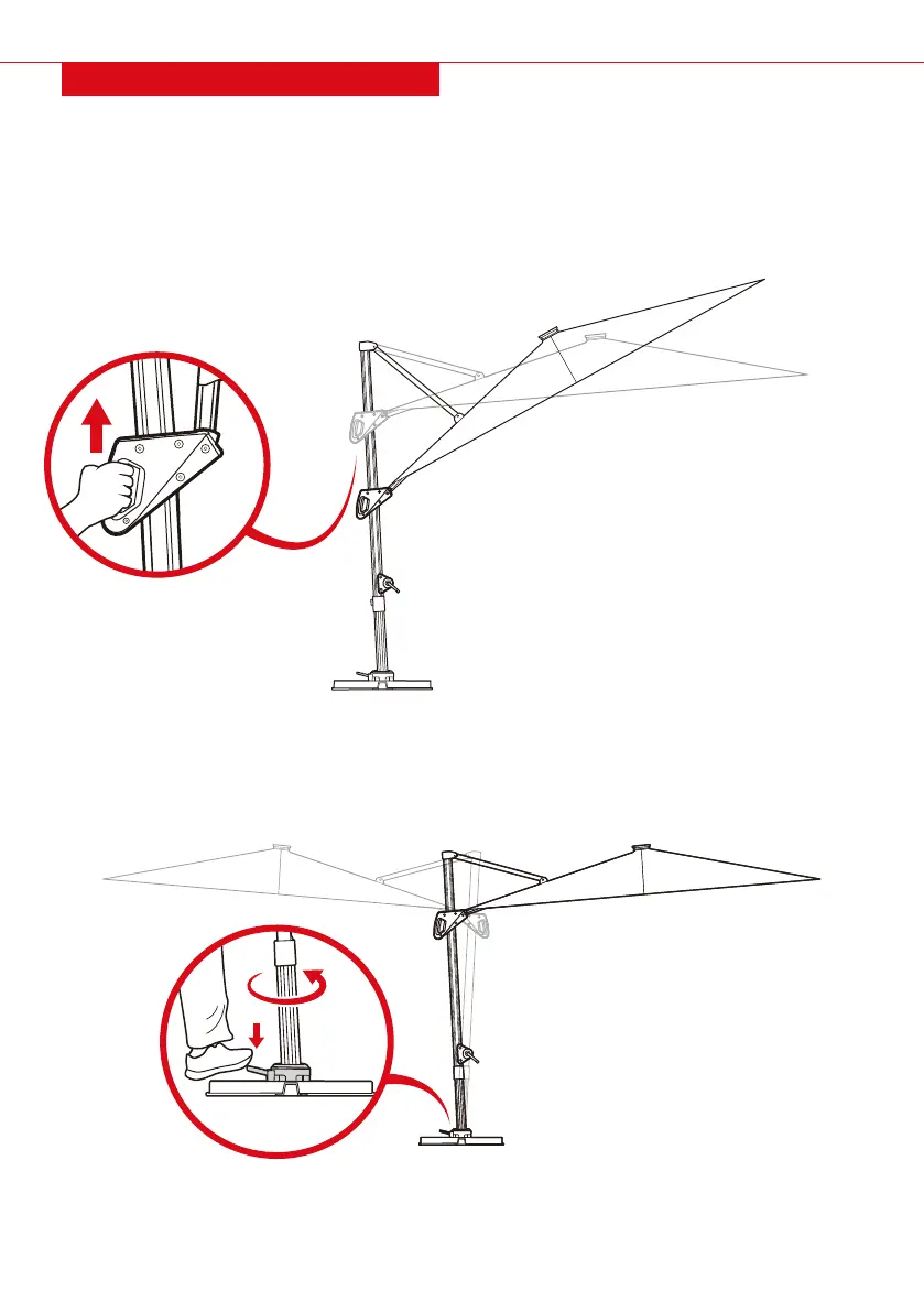 1. Use your foot to compress the pedal on the rotating base to rotate the canopy.