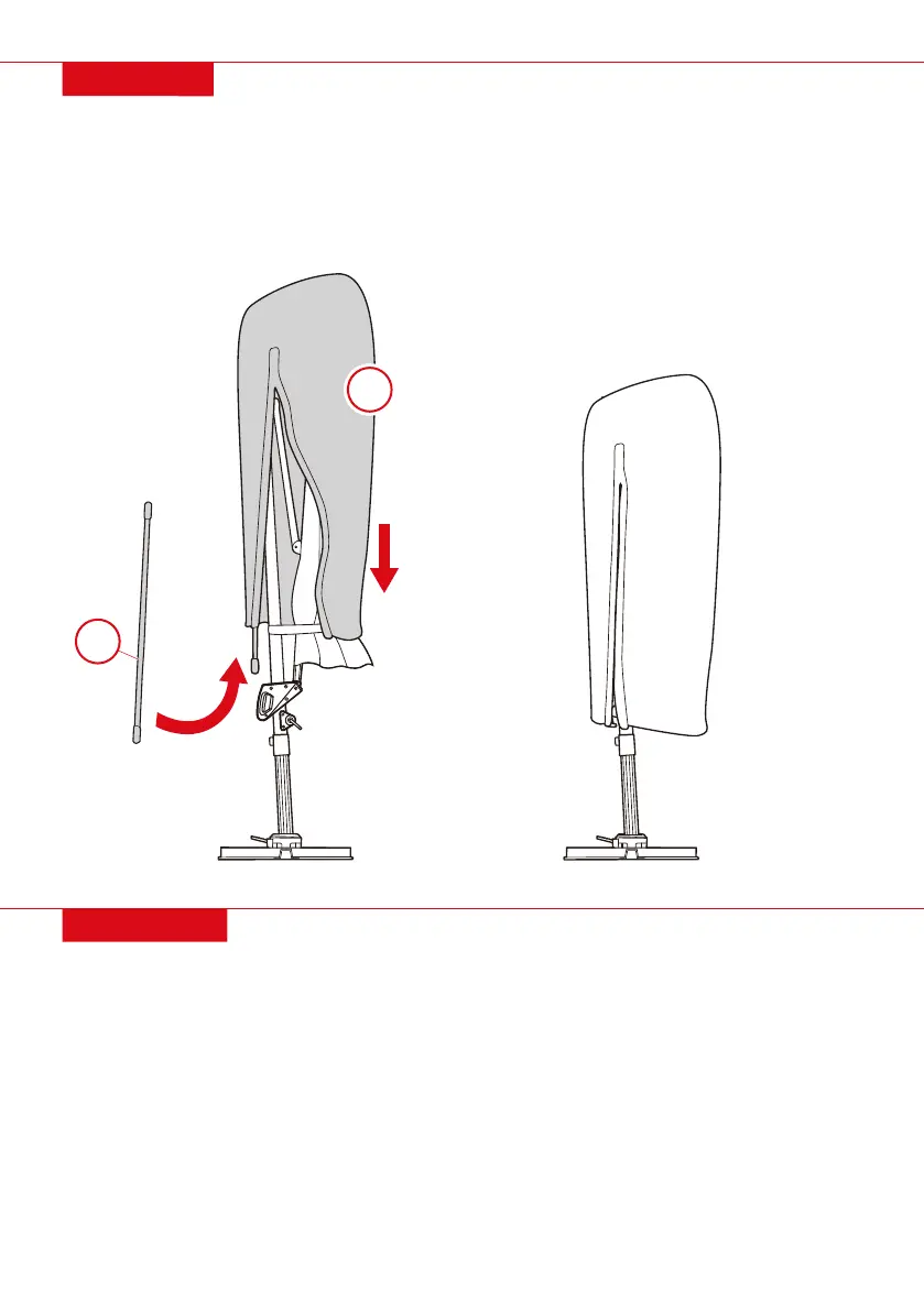 4. Place cover and pull the string to close the zipper. Remove the cover pole.