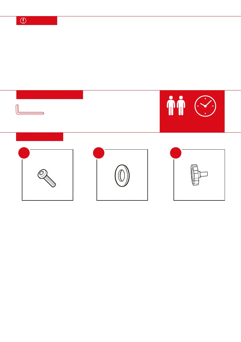 • Fasten screws loosely during initial assembly. Do not firmly tighten the screws until the item is