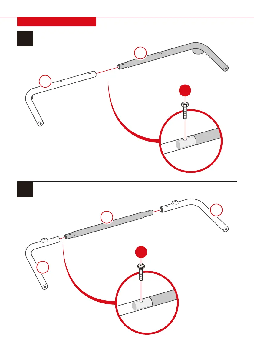 Connect the two part A upper frame bars with one part 1 screw, then set aside.