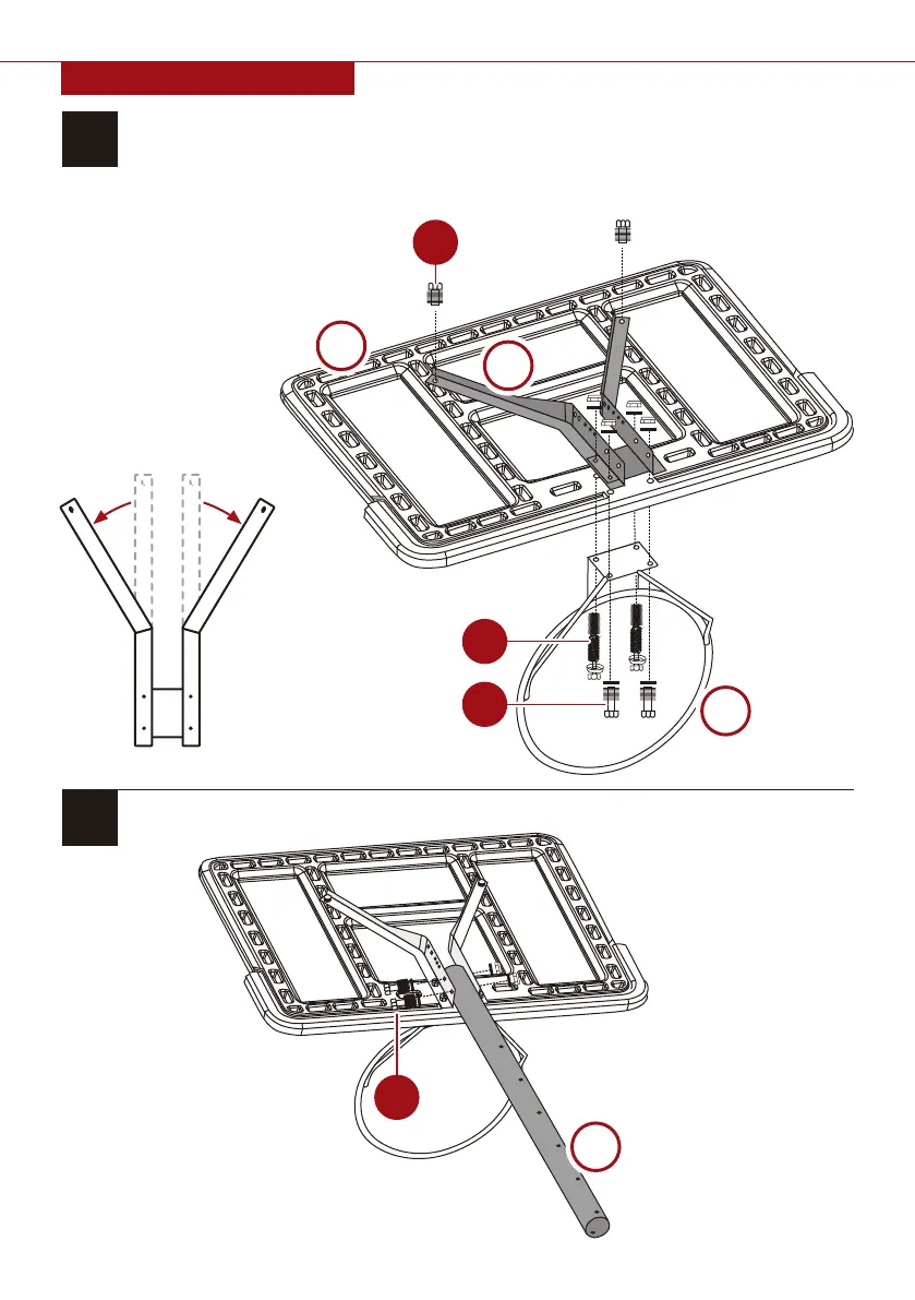Attach the part W top pole to the part K board bracket with two part F bolt and nut sets.