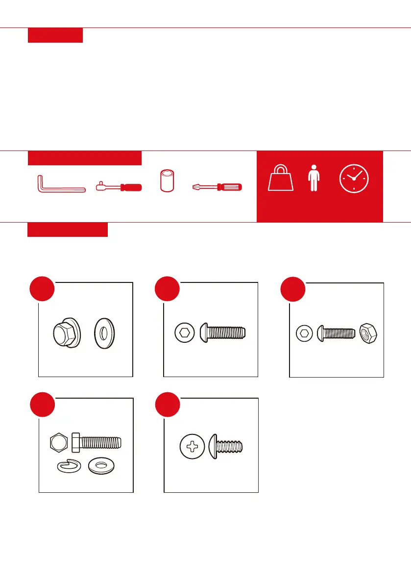 NOTE: All required hardware comes attached to the parts. During assembly, you will be instructed to