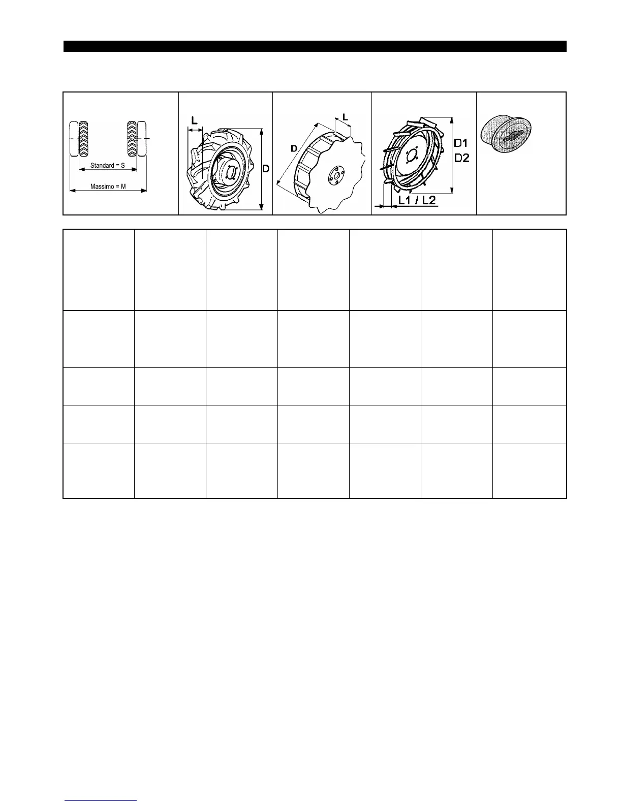BCS 615 - Tabella 1: Ruote; Tabla 1: Ruedas; Tableau 1: Roues; Tafel 1: Räder