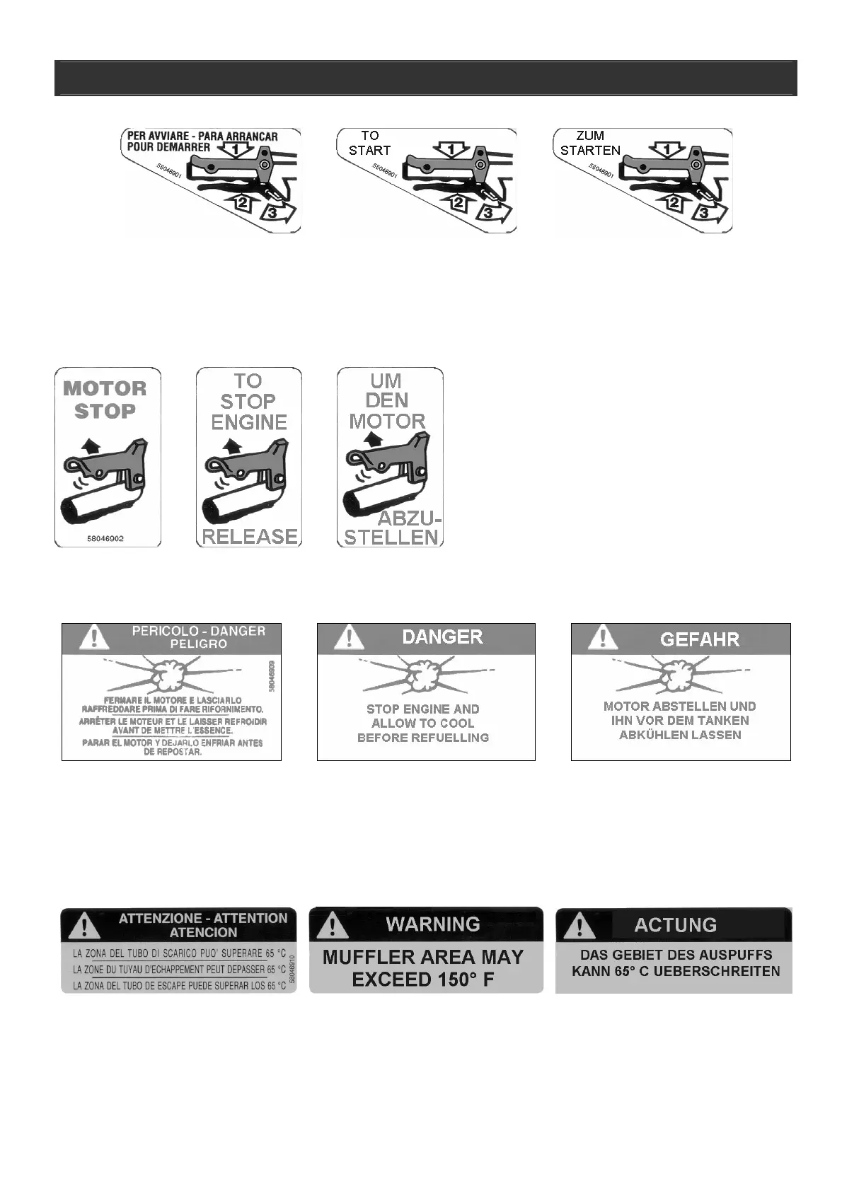 ADESIVI PER LA SICUREZZA / LABELS WITH SAFETY INSTRUCTIONS / ADHÉSIFS POUR LA SÉCURITÉ