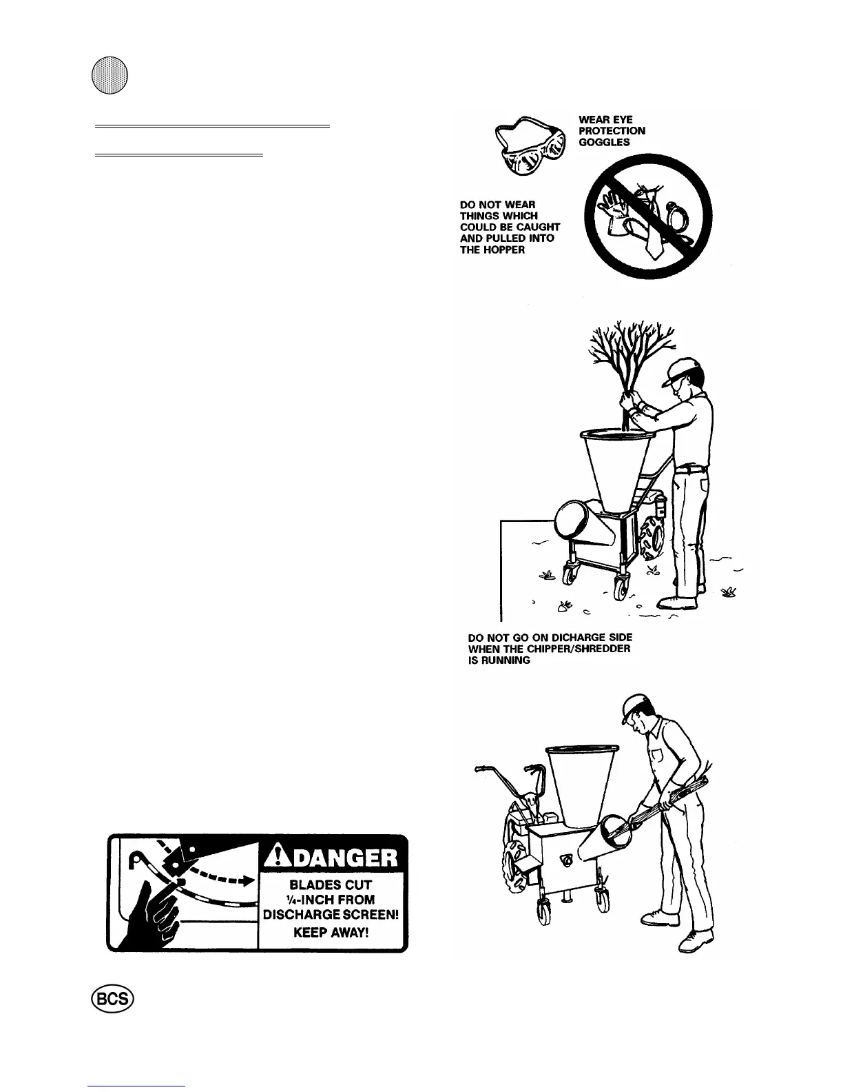 watches before operating the Chipper/Shredder. Gloves
