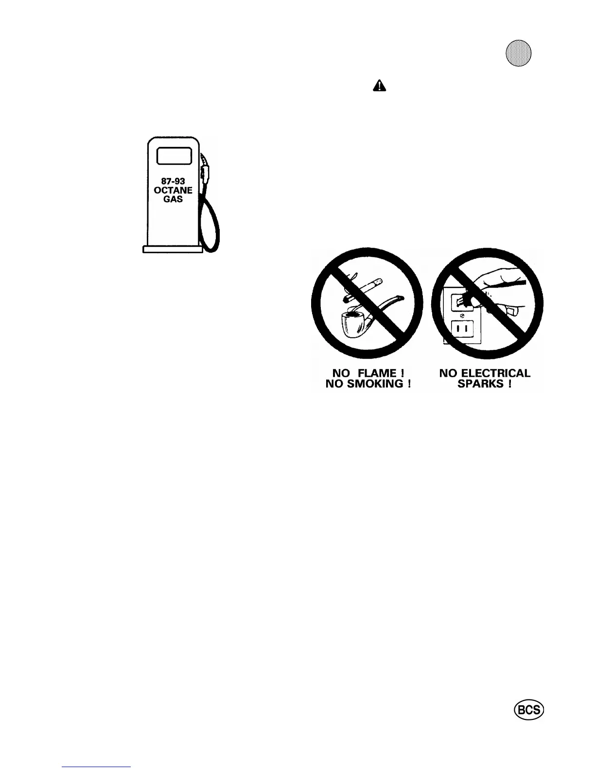 Gasoline is explosive ! Read page 5 of safety “Rules”,