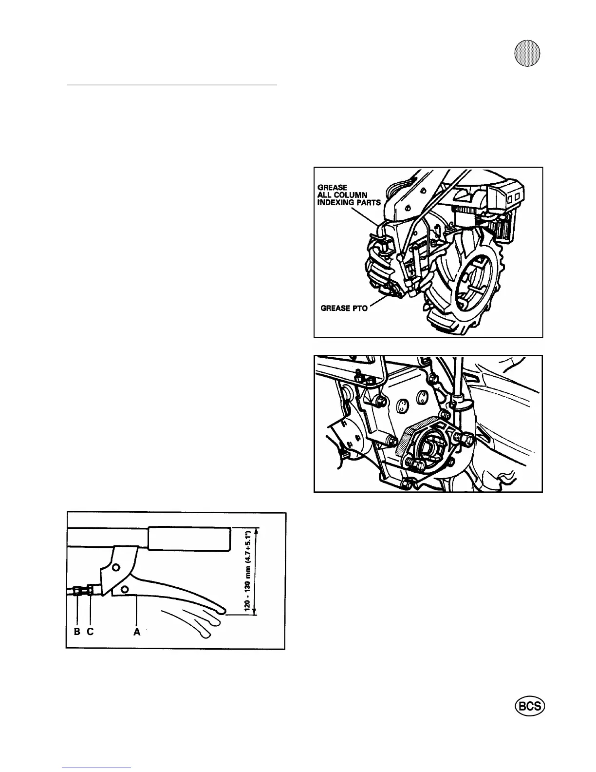 Re-check rotary mowers every 50 hours and the