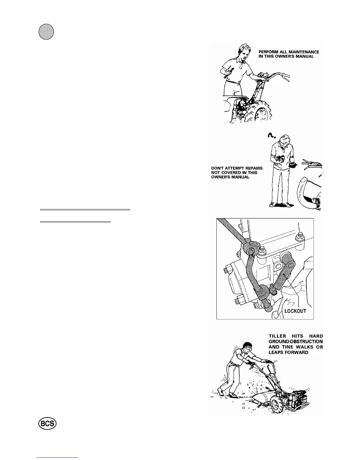 tor and the tiller. Use only wheels, counterweights, shaft ex-
