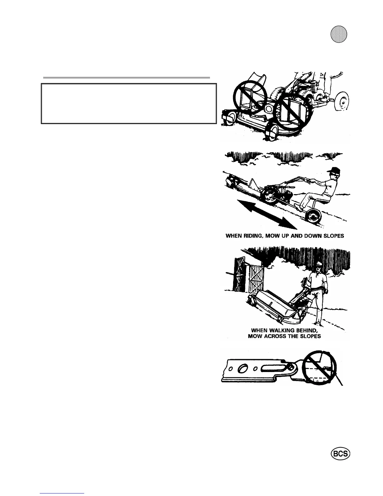 ses, vehicles and people. Inspect grass bags frequently for wear