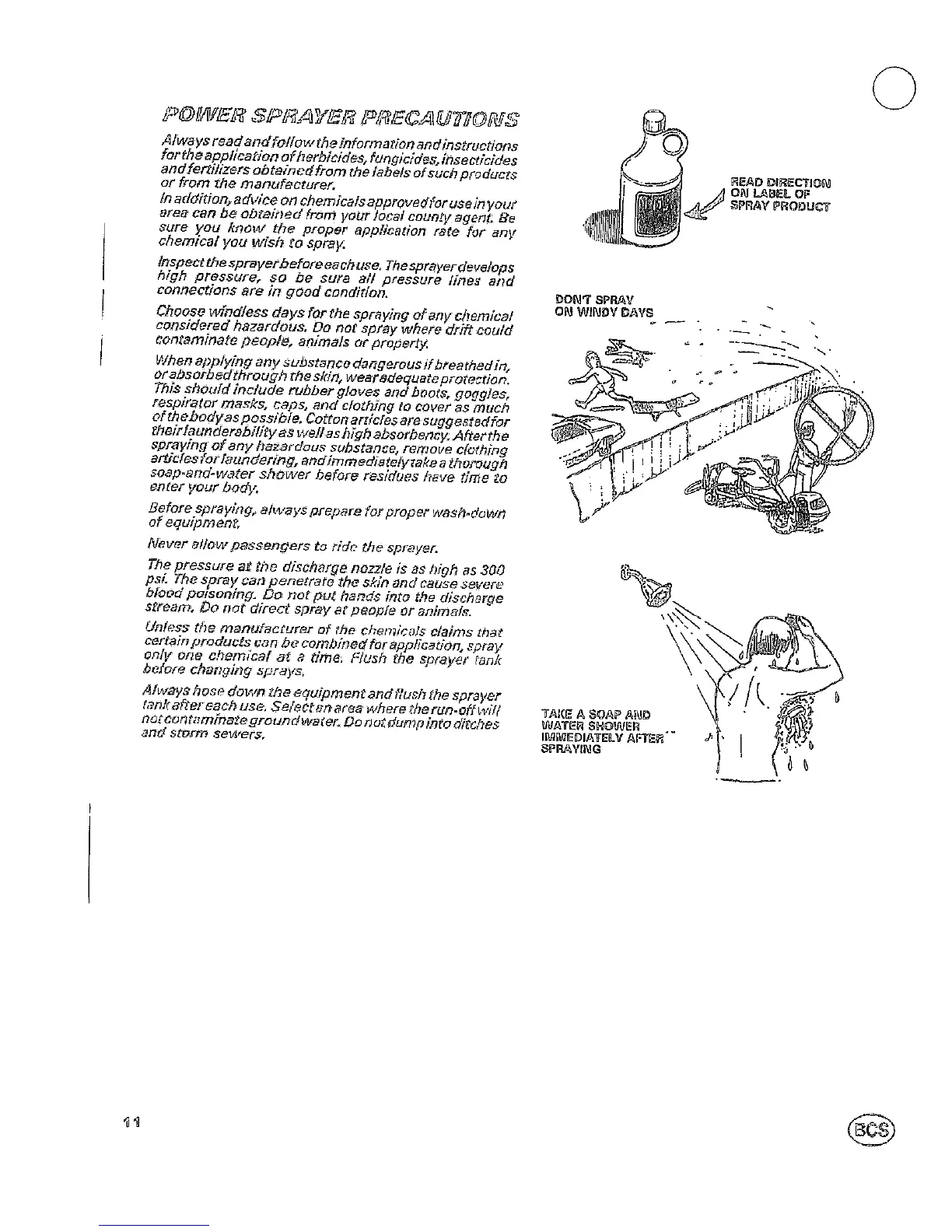 BCS 722 Harvester - POWER SPRAYER SAFETY PRECAUTIONS; POWER SPRAYER CHEMICAL APPLICATION SAFETY