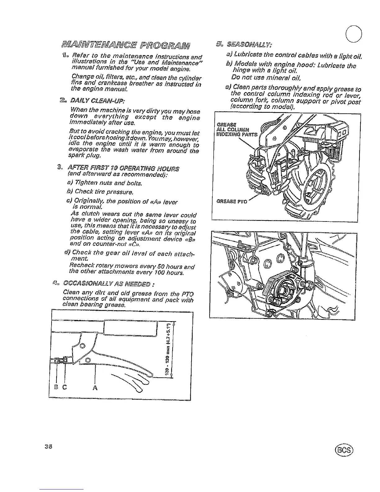 BCS 722 Harvester - MAINTENANCE PROGRAM; INITIAL AND PERIODIC MAINTENANCE TASKS