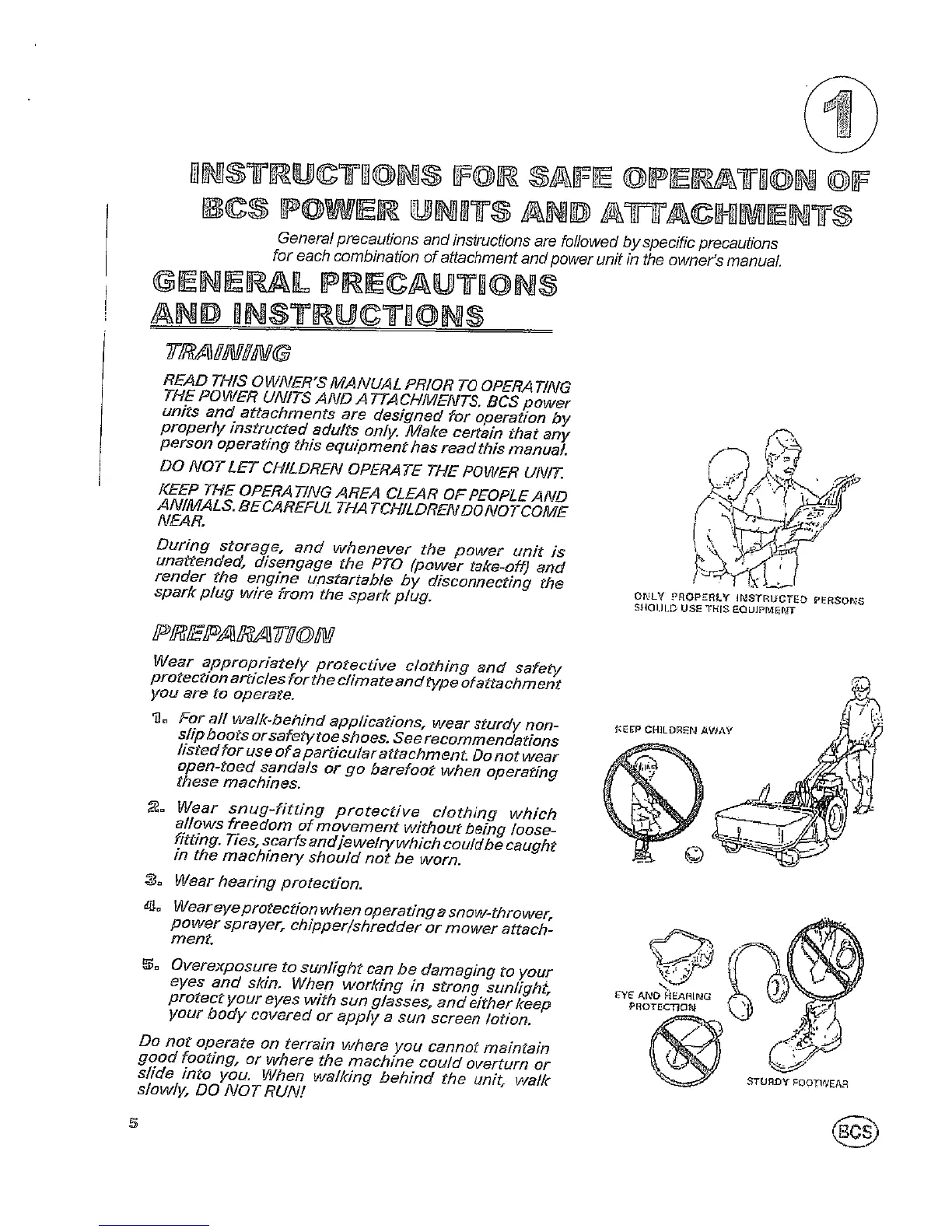 BCS 722 Harvester - SECTION ONE: RULES FOR SAFE OPERATION OF UNIT AND ATTACHMENTS; GENERAL PRECAUTIONS AND INSTRUCTIONS