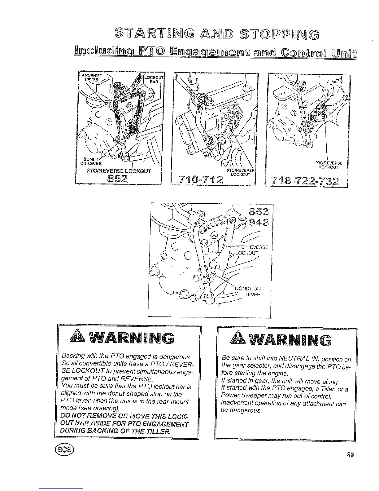 BCS 732 Professional - Starting and Stopping Procedures; PTO and Reverse Lockout Safety
