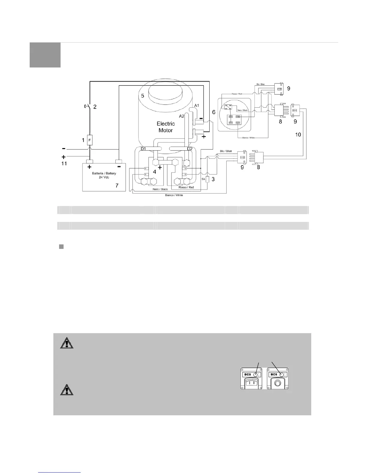 1 Fusibile principale 5 Motore elettrico 9 Spina femmina