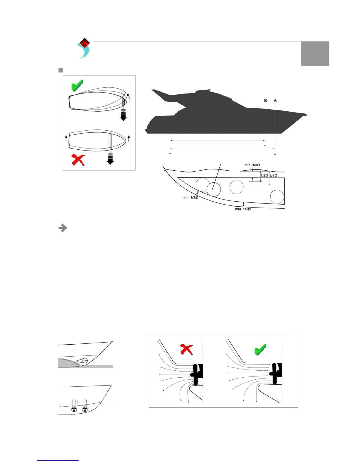 Diameter under the water line. The optimal distance is