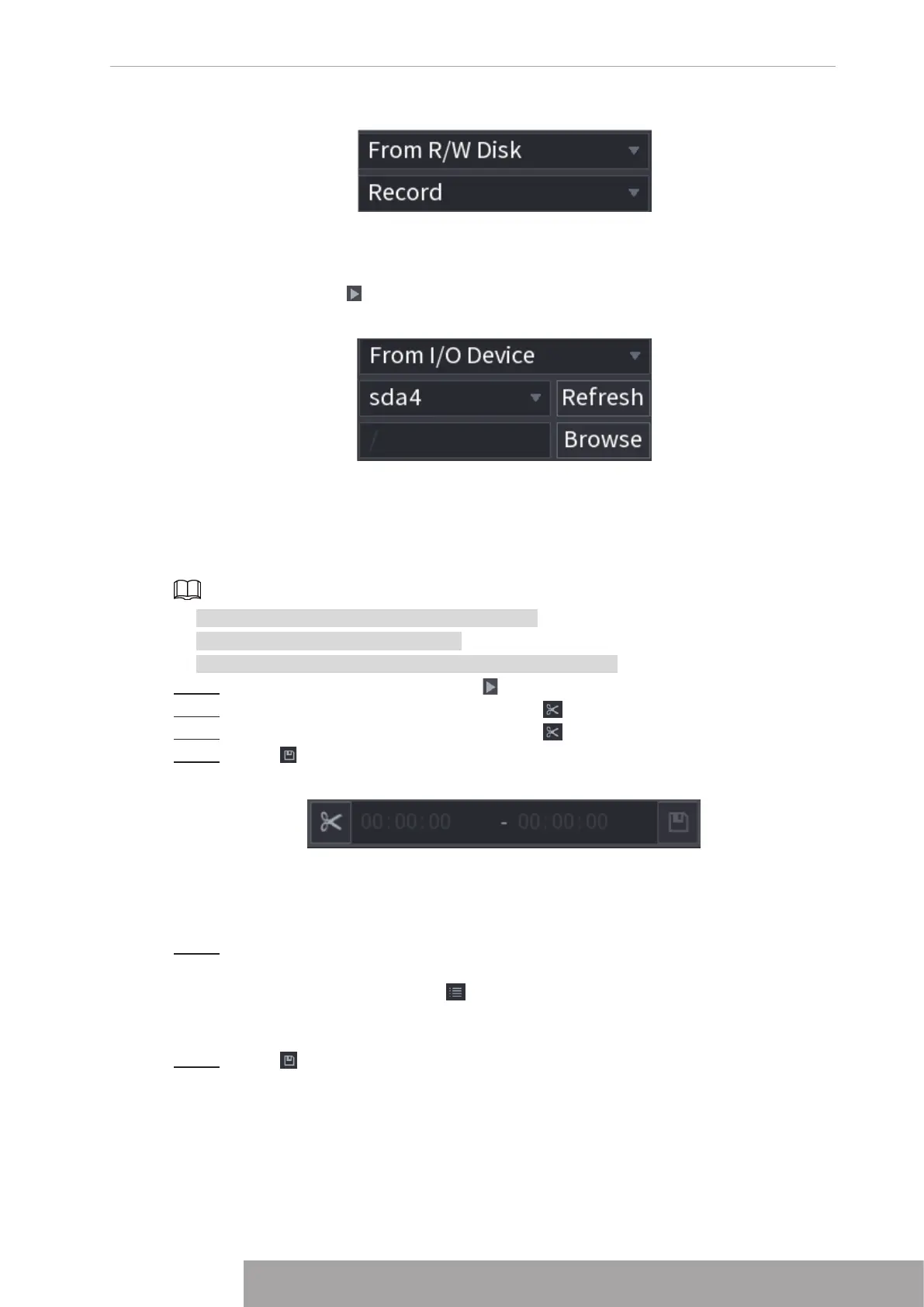 This function allows you to clip some footages to a new file and then save it to the USB device.