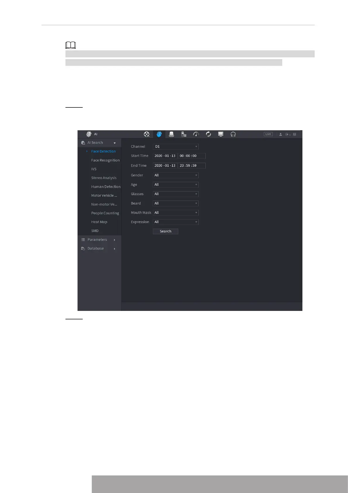Step 2 Select the channel, enter the start time and end time, and set for the gender, age,