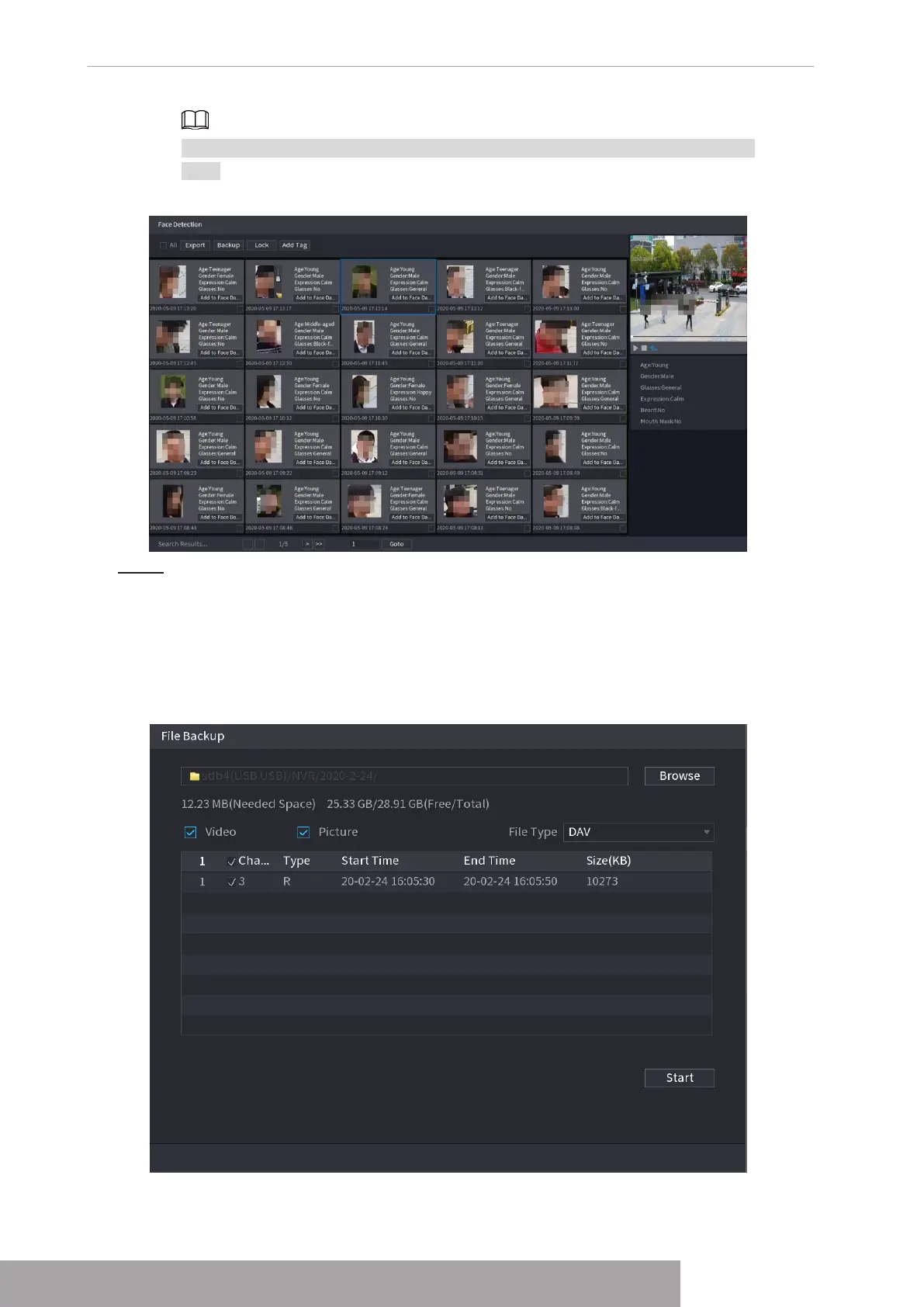 ● To back up the recorded files to the external storage device, select files, click